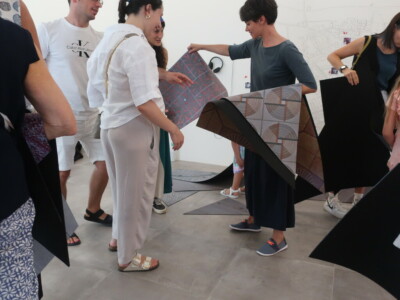 L’artiste a ensuite recueilli des témoignages oraux pour la phase suivante du projet, qui conduit à une dimension participative : les images collectées, assemblées en une grande mosaïque modulable et installées dans l’espace public pendant les journées du festival, formeront un « sol collectif ». Ce seront les personnes qui choisiront les lieux où positionner les morceaux du collage photographique, transformant les récits personnels en une expérience partagée.