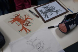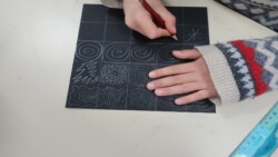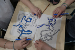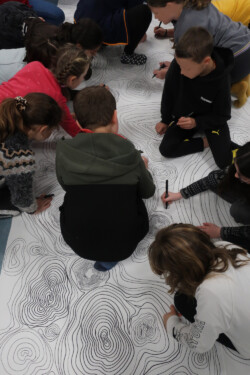 Cette année, c’est le karst qui est mis à l’honneur auprès des six classes participantes. Ce phénomène géologique présent en surface et en souterrain se traduit entre autres par la formation de grottes où le cheminement de l’eau contribue à l’érosion de la roche. L’artiste s’est saisie de cette notion et propose aux élèves une série d’explorations plastiques successives.